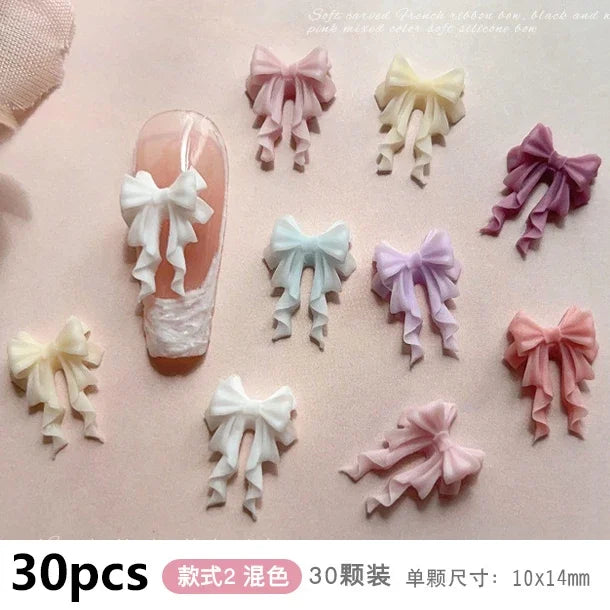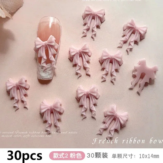 French Ribbons Resin Bowknot Charms for Nail Art Enthusiasts